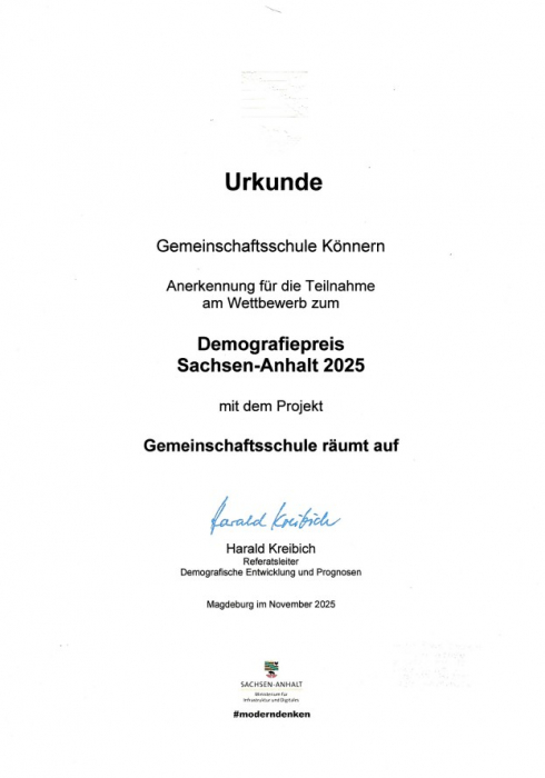 Die Gemeinschaftsschule Könnern bedankt sich herzlich beim